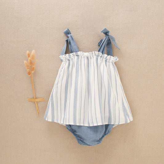 Conjunto bebé niña rayas azules flores