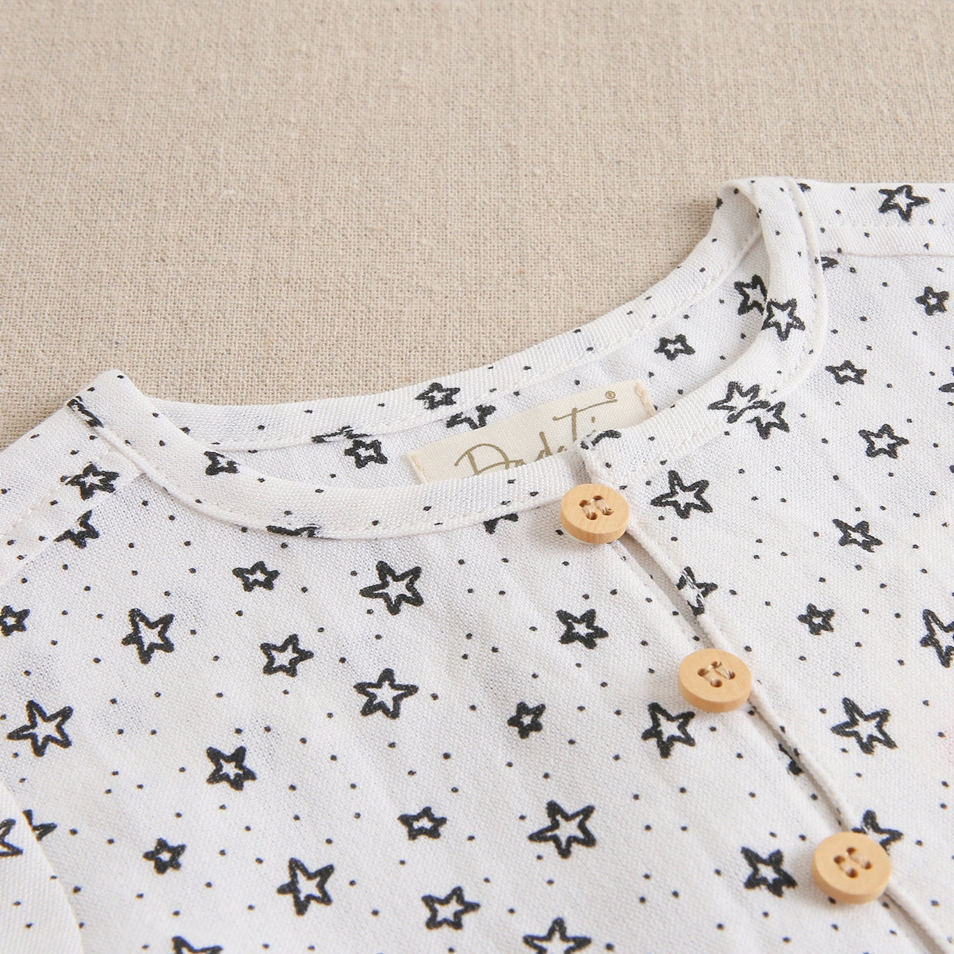 Camisa bebé estampado estrellas y manga larga. Cierre mediante media abotonadura en pechera con botones de madera.