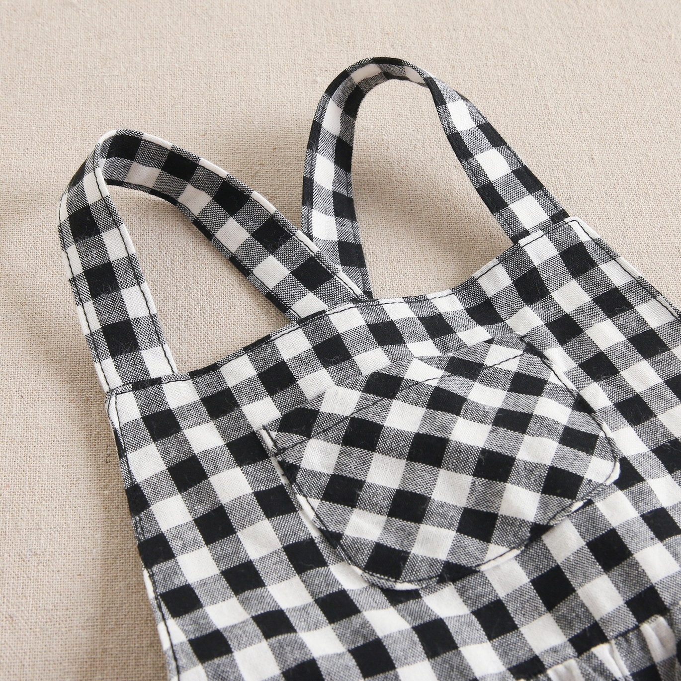 Peto bebé estampado cuadros vichy negros y blancos, tirantes cruzados en espalda y cinturilla elástica en espalda