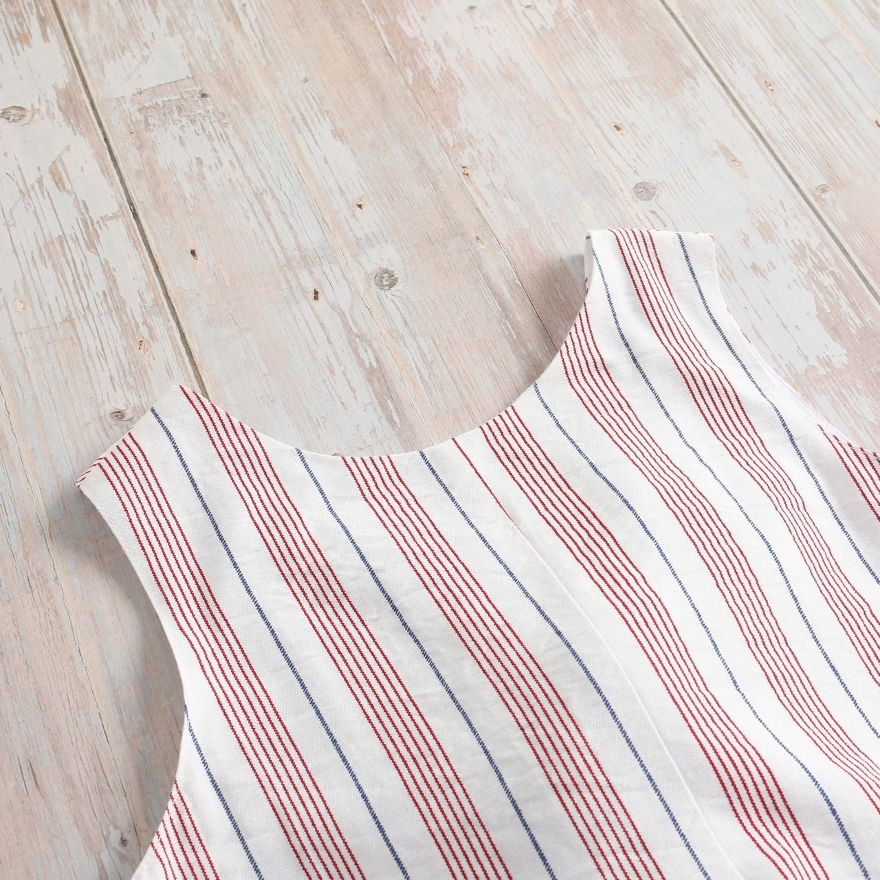 Jampisuit corto Jr estampado multirayas, con bolsillos en los laterales, y cuello redondo. Cierre en espalda mediante cremallera y lazo color demi.